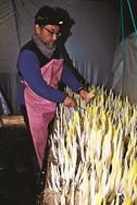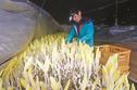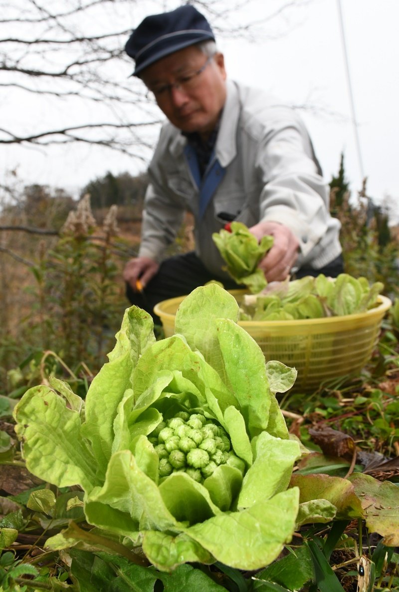 31日は、地元の農事組合法人むすび営農組合の佐藤文男さん(67)が丁寧に摘み取った。2月上旬まで作業し、例年並みの15キロの収量を目指す。佐藤さんは「この時期にしか味わえない里山の恵みを堪能して春を感じてほしい」と話した。