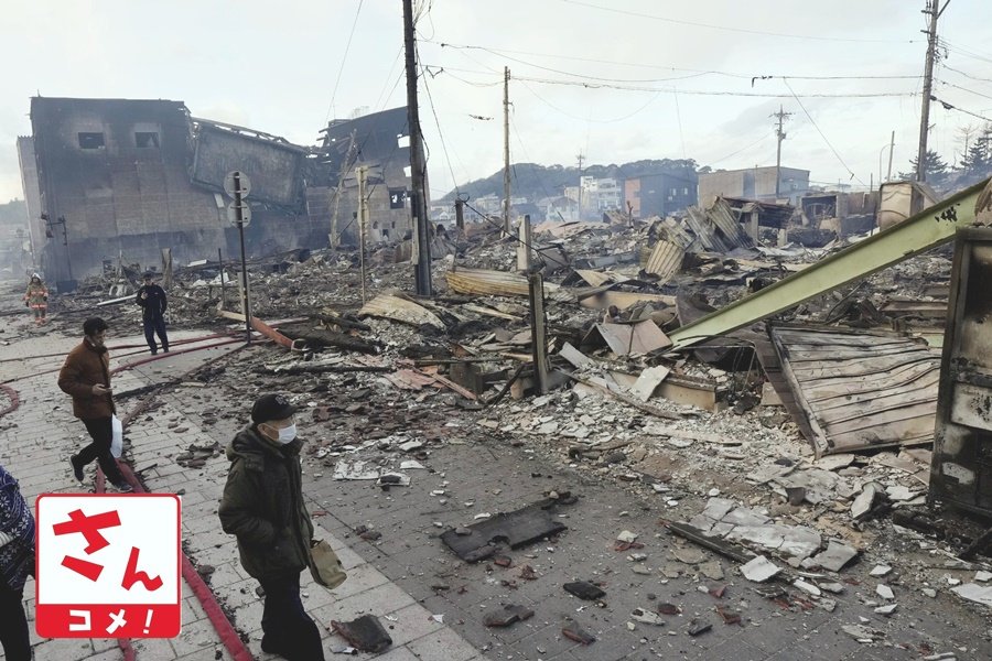 2、正月早々の津波や大きな地震は淡路大震災や3・11(東日本大震災)をすぐ思い起こしました。日がたつにつれ、その被害の大きさや亡くなった人の多さに胸が痛みます。私たちのところは周囲に山や川がなく、すぐ災害には結びつきません。今、一番憤慨していることは、被災した人たちを標的に窃盗や悪徳商法が横行していることです。まさに火事場泥棒で最低の行為です。打ちひしがれた時に優しい口ぶりはつい信用してしまいます。立ち直るまでにはこれから大変でしょうが、国や市町村の支援を糧に今を乗り越えてほしいです。(でめ、73歳)
