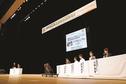 タブレット端末を活用する益田市内の小、中学校が実践例を発表する「新しい学びのカタチシンポジウム」が6日、同市有明町の島根県芸術文化センター・グラントワであった。授業や家庭学習で情報通信技術(ICT)を取り入れた具体例と効果について参加者が耳を傾けた。