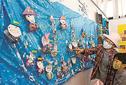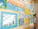 出雲市稲岡町、川跡幼稚園の園児が作った絵や工作などの作品展が8日、同園で始まった。創立60周年に合わせ、住民に教わった昔の園や地域の様子、遊びなどを題材にした作品が並び、園児が保護者らに紹介した。10日まで。