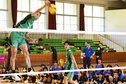 【出雲】バレーボール元男子日本代表で、2008年の北京五輪に出場した山本隆弘さん(45)=鳥取市出身=を招いた教室が10日、出雲市佐田町八幡原の市立佐田中学校であり、市内3中学校の女子バレーボール部員20人が一流の技術を学んだ。