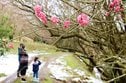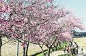 山陰両県は13日、高気圧に覆われ4月上旬並みの気温となった。出雲市斐川町直江の斐川公園では梅の花が見頃を迎え、訪れた人たちが青空の下、ピンクや白色のかわいらしい花と香りを楽しんだ。
