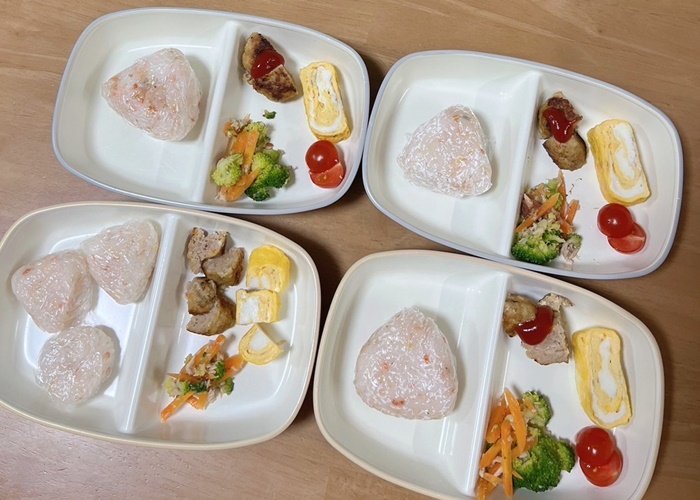 12、基本的にはいつも同じメニューにするようにして、時間もできるだけ同じ時間に食べられるようにしています。そんな中でもどうしても気乗りしなくて食べてくれない事があるので、時々は普段とは違うパンにしたり、大きなおにぎりを作ってみたり、食器を大人用のものに変えてみたりと、普段と違う事で気分を変えるようにしています。(ヘルメット上等の兄、30代)