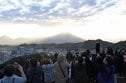 公園によると、午前8時40分ごろ、南西の中海上空から飛来したコハクチョウの群れ41羽が公園上空を通過し、北東へと飛び去るのを確認した。