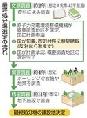 選定に向け、核のごみの最終処分事業を担う原子力発電環境整備機構(NUMO)が13日、北海道南西部の寿都(すっつ)町と神恵内(かもえない)村で実施した全国初の文献調査の報告書案を、経済産業省の作業部会に提示した。寿都町の全域と神恵内村の一部が、続く概要調査に進むことが可能と判断。経産省の基準では、258万年前以降に活動した火山から約15キロ圏内は「適さない場所」とされており、神恵内村の候補地は南部の一部に限定された。