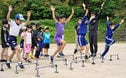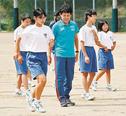 【隠岐の島】パナソニック女子陸上部の選手2人が29日、島根県隠岐の島町都万、都万中学校で陸上教室を...