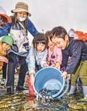 「元気に帰ってきてね」 園児がサケとサクラマスの稚魚放流 古志幼稚園
