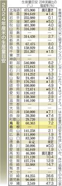 コメ島根減、鳥取前年並み 24年産作付面積意向調査 農水省 山陰 2024/3/6 04:00 保存 農林水産省は5日、2024年産の主食用米の作付面積について、1月末時点の都道府県別の意向調査結果を公表した... 残り486文字(全文:540文字) 続きを読むには会員登録が必要です 無料会員に登録する ログインする 保存 記事を保存する この機能は有料会員限定です。保存した記事やフォローした特集をマイページでご覧いただけます。 有料会員になる ログイン 関連記事 コメ生産目安 26県が増加 24年産、鳥取7.2%増 2024/1/23 04:00 コメ作況、島根「平年並み」 23年産確定 鳥取は「やや不良」 2023/12/13 04:00 山形つや姫 西日本で拡大 島根は作付面積全国3位 高温、風雨に強く 普及課題も 2023/12/10 04:00 飼料用イネ、品質向上に力 島根県 栽培知識普及急ぐ 高まる需要、作付け拡大 2023/10/27 04:00 24年コメ生産669万トン 横ばい、作付面積も維持 2023/10/20 04:00 特集・連載 客前で切り替わる「スイッチ」 テーマに合わせ「演じる」 コンカフェ店員の女子大生(中)〈顔なき…声〉 2025/8/13 05:00 スポーツを科学しよう<49> 栄養(17) 安易なサプリメント使用は禁物 2025/6/3 04:00 健康経営に助言 益田 2025/5/22 04:00 島根、鳥取の上水道料金 値上げ加速か 高騰回避への道標 2025/5/4 17:00 AI予測で生産を効率化 ヤンマーキャステクノ㈱ 代表取締役社長 金井 保博氏 もしもの時の防災対策 9月20日は「バスの日」 やっぱり、しまねがいい。Uターンして気づいた暮らしの豊かさ。海士町にUターンした大脇さんの話。