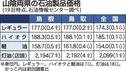 経済産業省が6日発表した山陰両県のレギュラーガソリン1リットル当たりの小売価格(4日時点)は、島根県が前週より30銭安い176円80銭、鳥取県も30銭安い178円ちょうどで両県ともに3週ぶりに値下がりした。全国平均は20銭安い174円50銭だった。