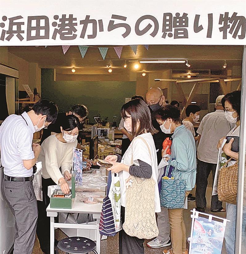 浜田特産のアジ、ノドグロやカレイの干物を大分県西部の山間地・日田市で売り込むイベントが26日あり、山陰の海の幸を求める人でにぎわった。