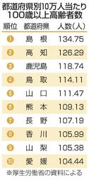 鳥取最高齢女性死去 尾崎さん、110歳 山陰 2024/3/9 04:00 保存 鳥取県が8日、県内最高齢だった尾崎とみ子さん(110)=鳥取市湖山町西3丁目=が死去したと発表した。県によると、3日に... 残り45文字(全文:108文字) 続きを読むには会員登録が必要です 無料会員に登録する ログインする 保存 記事を保存する この機能は有料会員限定です。保存した記事やフォローした特集をマイページでご覧いただけます。 有料会員になる ログイン 関連記事 江戸後期の長寿番付発見 母里藩の18村 最高齢95歳 安来、旧家の古文書 2022/9/19 04:00 100歳以上 9万2139人 10万人当たり 島根最多、鳥取3位 2023/9/16 04:00 100歳以上 初の9万人超 人口割合 島根10年連続1位 2022/9/17 04:00 100歳以上 最多8万6510人 人口割合 島根9年連続1位 2021/9/15 04:00 鳥取県最高齢 110歳女性死亡 2022/8/17 04:00 特集・連載 目分量で打つ覚醒剤 「被害妄想」起こしパニックに 薬物依存症だった男性(3)〈顔なき…声〉 2025/9/4 18:00 客の前では「王子様」 「オタク趣味」は小学生の頃から コンカフェ店員の女子大生(上)〈顔なき…声〉 2025/8/12 05:00 健康経営に助言 益田 2025/5/22 04:00 国要望が頓挫、独自条例へ 「竹島の日」条例制定尽力の故上代県議 住民の声、怒りを原動力に きょう20回目竹島の日 2025/2/22 04:00 島根スサノオマジック「選手のサイン入りTシャツ」 先着10名様にプレゼント スサノオマジック「フェイスタトゥーシール」販売決定! 営業力強化で安定受注へ ㈱守谷刃物研究所 代表取締役社長 守谷 吉弘氏 地元で育つミライのチカラ 島根県立浜田水産高校