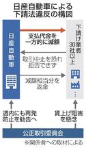 公取委によると、コスト削減を名目に長年続いてきた商慣習だったという。自動車メーカーを頂点とする巨大な供給網の暗部であり、下請けの賃金が抑えられてきた一因でもある。日産は下請けいじめの慣習が始まった経緯や、長年続けてきた責任の所在を明らかにし、直ちに是正しなければならない。