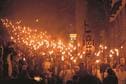 わらを編んで作った全長約20メートル、重さ1トンの「大蛇」を住民が担いで神社へ奉納する鳥取県大山町の「赤松の荒神祭」が10日、現地で執り行われた。