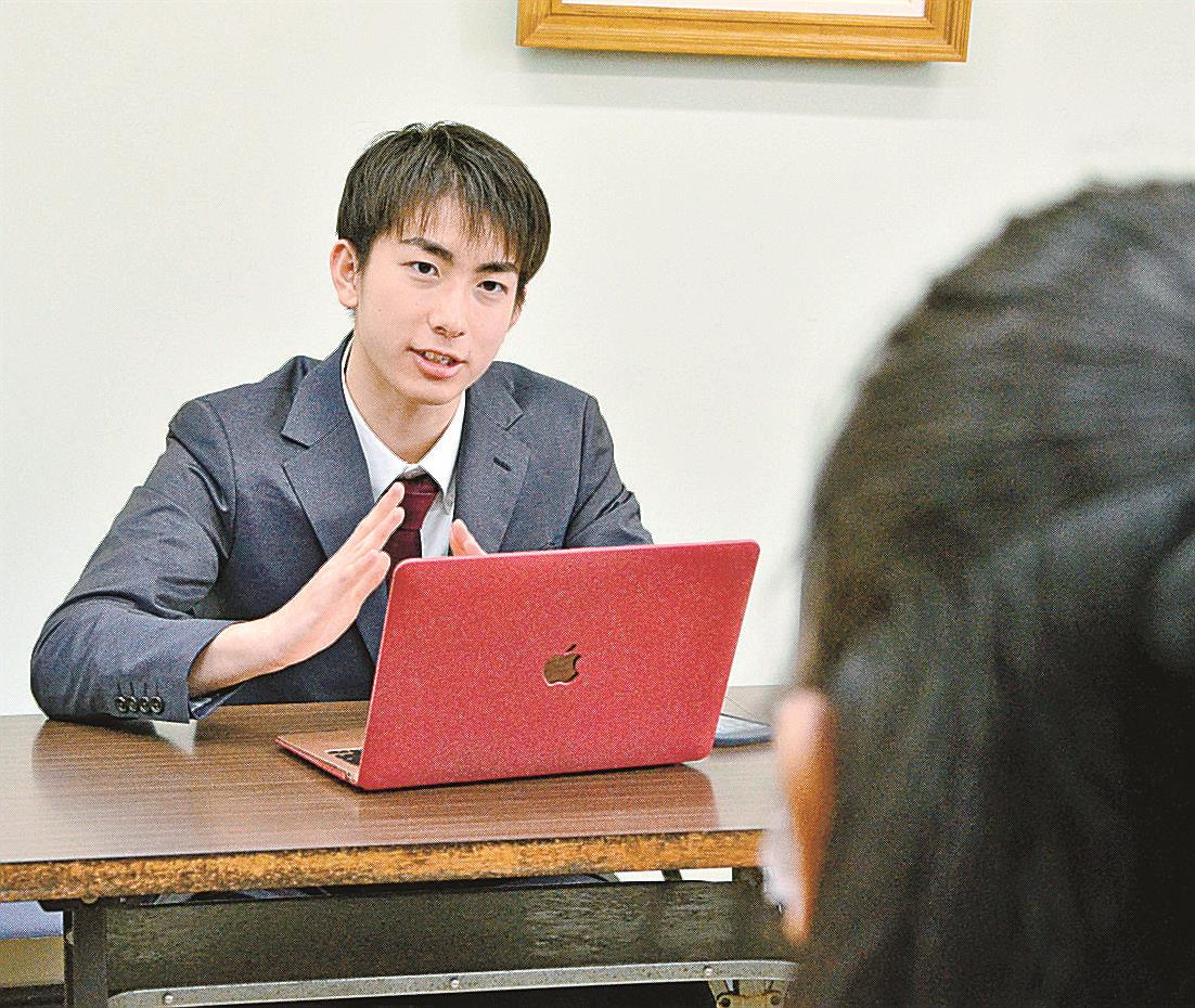 松江東高校(松江市西川津町)で生徒会長を務める野津昂太郎さん(18)=3年=が、松江市内の高校生徒会長のネットワーク組織「松江地区高校生徒会長会」の設立に向け、奔走している。学校の枠を超えて情報交換し、各校の生徒会活動に生かすほか、卒業後も互いの活動に協力し合える絆を育む考え。「古里に愛着が増すきっかけにもなれば」と意気込む。 (吉野仁士) 松江市で生まれ育った野津さんは、住民の人当たりが良く、自身の生徒会活動を支えてくれる地元が大好きで、恩返しがしたいという強い思いを持つ。将来は起業家になって地元に貢献するという夢を抱き、より多くの人と出会える東京の大学への進学を決めた。