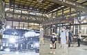 保存修理工事が進む国の重要文化財・JR旧大社駅(出雲市大社町北荒木)の屋根のふき替えの様子が13日、報道陣に公開された。約1万2千枚の瓦を敷き詰める作業中で、純和風の屋根の形を間近で見ることができる。24日午前10時~午後3時に見学会を開き、広く一般に公開する。
