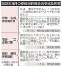 それまでの還流方式が法に触れると考えたからこそ、代替案が示されたのではないか。塩谷、西村両氏もそうだったが、提案者を特定すれば、自民党内外から批判されることを危惧したと受け止められても仕方あるまい。