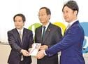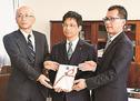 鳥取市東町1丁目の県庁であった贈呈式で、足羽英樹教育長に、山陰中央新報社の福間崇広鳥取総局長と山陰中央テレビジョン放送の佐藤成興鳥取総局鳥取統括米子支社長が目録を手渡した。足羽教育長は「図書は子どもたちの夢を育み、思考力や表現力を伸ばすのにとても大きな意味を持つ。学校で大切に使っていきたい」と話した。