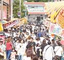 悪天候でも彼岸市にぎわう 大田で「中日つぁん」 たこ焼きや雑貨、露店ずらり