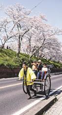 お花見シーズンに合わせ、雲南市内を屋根のないオープントップバスと人力車が走る。「さくら名所100選」の斐伊川堤防桜並木(雲南市木次町)や三刀屋川河川敷(同三刀屋町)の桜を、普段とは違った目線で楽しめる。