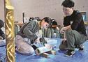 画聖・雪舟が室町時代に作庭したとされる国指定史跡・名勝の庭園。樹高約10メートルの古木が斜面に根を張る。鶴をかたどった池に浮かぶ亀島の上に枝が垂れ、来観者が花をめでている。