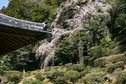 益田市染羽町の古刹(こさつ)・医光寺の雪舟庭園で、樹齢約450年と伝わるしだれ桜が見頃を迎えた。薄紅色の花が陽光に映え、春風に揺れている。