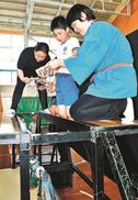 益田市吉田地区に伝わる郷土芸能を紹介する「民俗芸能祭」がこのほど、同市元町の市民学習センターであった。来場者約100人が地域で受け継がれてきた獅子舞と針拾い神事や益田糸操り人形などをを楽しんだ。