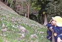 島根県吉賀町樋口の民有林で自生するカタクリが見頃を迎え、愛らしい薄紫色の花が訪れた人を楽しませている。現在六分咲きで今週末、満開になりそう。