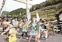 展示では同会が開いたフォトコンテストの受賞作品を紹介。5月の三隅つつじ祭りで地元の子どもたちが手作りの甲冑(かっちゅう)姿で勇ましく歩く作品や、10月の町内七つの山城による「のろしリレー」で高く煙が上る作品が目を引く。