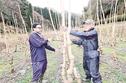 【益田】益田市の誘致企業、切削工具メーカーの大見工業(本社・愛知県安城市)の新入社員5人が3日、同市匹見町落合のハウスで旬の山菜・タラの芽の収穫を体験した。