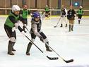 参加者は習熟度に応じて4グループに分かれ、滑った。高木選手は身ぶりで示しながら滑り方のこつを教え、...