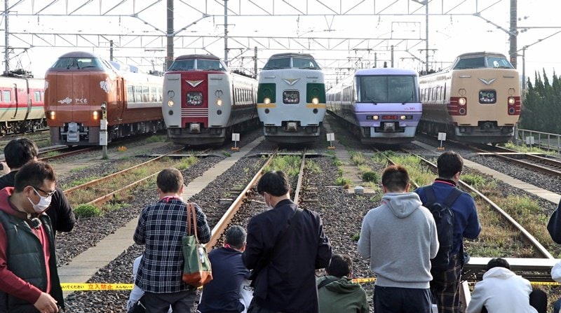 5編成の並びは今回が最初で最後となる。JR西日本山陰支社山陰営業部の足立智課長代理は「381系の引退前に企画できてよかった。今後も多くのファンに喜んでもらえるイベントを企画したい」と話した。