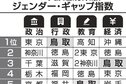 行政分野 島根5位に変更 ジェンダー・ギャップ指数 県の報告数値誤りで修正 山陰 2024/4/9 04:00 保存 内閣府は8日までに、自治体の男女共同参画に関する2023年度調査のうち、島根県の大卒程度職員... 残り431文字(全文:478文字) 続きを読むには会員登録が必要です 無料会員に登録する ログインする 保存 記事を保存する この機能は有料会員限定です。保存した記事やフォローした特集をマイページでご覧いただけます。 有料会員になる ログイン 関連記事 島根県 報告数値に誤り 大卒女性採用 指数の順位に影響 2024/3/8 05:00 都道府県ジェンダー・ギャップ指数 鳥取、3分野でトップ5 2024/2/19 04:00 論説コラム 風速計 男女格差の是正 「当たり前」を変えていこう 論説委員・岡田素衣 2024/2/19 04:00 国際女性デー 政治の男女平等 全国で改善 都道府県指数 行政、経済 鳥取1位 2024/3/8 05:01 おせちの定番ピンチ 中海で養殖の赤貝、規制値を上回る貝毒 3週間程度の出荷規制 2025/12/10 18:00 特集・連載 客の前では「王子様」 「オタク趣味」は小学生の頃から コンカフェ店員の女子大生(上)〈顔なき…声〉 2025/8/12 05:00 一刀領談・下條正男 石破首相と戦後80年談話 「盗人に追い銭」は愚か 2025/4/14 04:00 領有権確立、進展ないまま 竹島の日、22日で20回目 2025/2/22 04:00 「くまモン」のブランド戦略学ぶ 松江、島根大で教授講演 2024/12/6 04:00 やっぱり、しまねがいい。Uターンして気づいた暮らしの豊かさ。海士町にUターンした大脇さんの話。 お子さんがより学べる家庭環境とは? 小中学生の保護者必聴セミナーを11月15日(土)に開催 まちの未来に私の力を 地域でひろがる活動の輪 親子で楽しめる!YouTube登録100万人超・市岡元気氏による夏休み特別サイエンスライブを開催