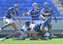 祝原久温主将(17)、FWリーダーの沼壱希さん(17)、BKリーダーの原田崇良さん(17)の3選手と、出村知也監督(35)らが準優勝カップを手に訪問。出村監督は「優勝チームとの差は痛感している。より走ってボールを動かすラグビーの完成形を目指したい」と決意を示した。