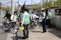 春の交通安全運動に合わせて安来市中海町、道の駅あらエッサで8日、安来署と米子署の合同広報検問があった。