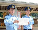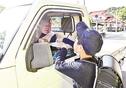 合同検問ではチラシや啓発用品が入ったクリアファイルをドライバーに手渡し「安全運転に気をつけてください」と呼びかけた。