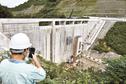 滝の名称の由来になった岩瀧寺で地図を受け取り出発。水を蓄えた波積ダム周辺を歩きながら2キロ離れた滝に到着した。下流にある波積ダムの試験湛水(たんすい)の影響で水位が上がって遊歩道が水没しており、そばまでは立ち入れなかったが、参加者は4段が連なる滝から水が流れ落ちる光景に圧倒され、記念写真を撮った。