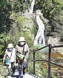 江津市波積町の市指定文化財「岩瀧寺(がんりゅうじ)の滝」周辺を歩くイベントが7日あり、参加者150人が、近くの波積ダムの景色も楽しみながら心地よい汗を流した。