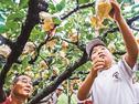 湯梨浜町野方で二十世紀梨20アールを栽培する唐﨑大義(ひろよし)さん(32)=湯梨浜町久留=は和歌山県出身で、鳥取大在学中に二十世紀梨を知って引かれ、2017年にIターンした。人工交配の手間がかかっても「肌がきれいで見ても素晴らしく、みずみずしくおいしい梨」と二十世紀梨を気に入っていて、10日も白い花に囲まれて作業に精を出した。