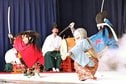 飯南神楽団は広島の神楽の流れをくむ。公演では、土蜘蛛(つちぐも)の精魂が化けた侍女に毒を盛られながらも抵抗した源頼光に征伐を命じられた四天王が土蜘蛛を倒す「土蜘蛛」、頼光一行が丹波の国の大江山にいる悪鬼・酒呑童子を征伐する「大江山」、スサノオノミコトがヤマタノオロチを退治する出雲神話にちなんだ「大蛇(おろち)」など4演目を披露する。