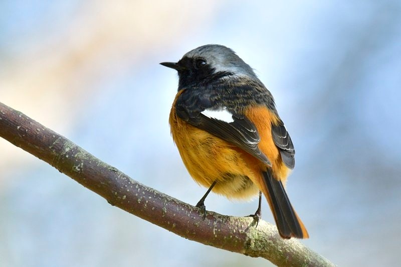 そろそろ帰ろうとしたところで、ジョウビタキが近くに飛んできてくれた。オスは黒の翼とだいだい色の腹のコントラストが鮮やかだ。ジョウビタキも冬鳥。10月ごろに日本にやってきて、春まで過ごす。半年間の別れを惜しむ気持ちで、枝の上で尻を振るしぐさを飛び去るまで観察した。