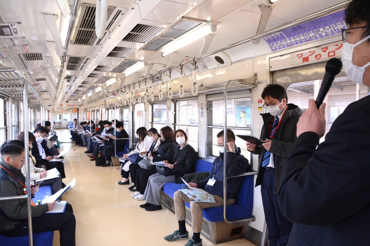 駅構内の見学やデハニ50形の運転体験もあり、現役運転士の指導を受けながら150メートルの専用レールで体験運転に挑戦した。板張りのレトロな車両内は、不慣れなブレーキワークに笑いが漏れたり、正確な停車に拍手が沸いたりするなど、にぎやかな雰囲気。中海テレビでカルチャースクール事業を担当している曽田凛子さん(25)は「創意工夫された実践例から、地域素材の活用について学ぶことができました。今後の業務の参考したい」と話した。