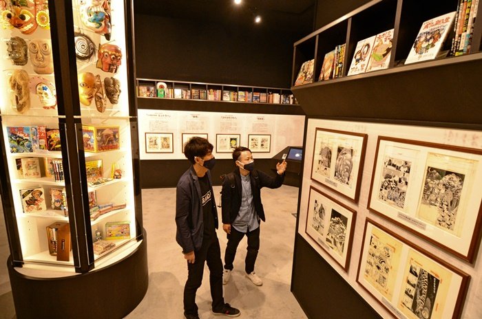 展示スペースの常設展は「境港のしげる少年」「水木しげると戦争」「そして漫画家に」「水木しげるが描いた妖怪たち」「水木しげるの漫画ワールド」「水木しげるの言葉」の計6章で構成。企画展示室では20日から10月20日まで「鬼太郎の誕生-生まれかわる四つの物語-」をテーマに原画などを展示する。