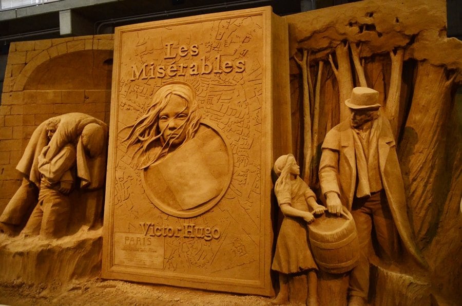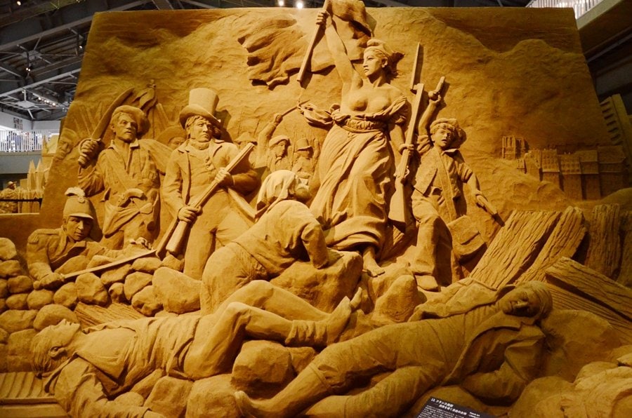 文豪ビクトル・ユゴーの名作にちなむ「フランス文学-レ・ミゼラブル」は、主人公ジャン・バルジャンとヒロインのコゼットの出会いなどを再現。画家ドラクロワの名作にちなむ「フランス美術-民衆を導く自由の女神」は立体ならではの迫力があふれる。