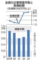 倒産 島根42.4%増47件 鳥取24件 業歴30年以上6割 23年度 山陰 2024/4/19 04:00 保存 東京商工リサーチがまとめた山陰両県の2023年度の倒産件数(負債総額1千万円以上)は、島根県が前年度比42・4%増の47件、鳥取県が26・3%増の24件だ... 残り704文字(全文:782文字) 続きを読むには会員登録が必要です 無料会員に登録する ログインする 保存 記事を保存する この機能は有料会員限定です。保存した記事やフォローした特集をマイページでご覧いただけます。 有料会員になる ログイン 関連記事 倒産31%増 9年ぶり水準 23年度 物価高や人手不足 2024/4/9 04:00 54件 21件 両県倒産件数 前年上回る <山陰経済 気になる数字> 2024/2/15 04:00 時論 外国人との共生探る 「育成就労」制度 恩賜財団 済生会理事長・炭谷 茂 2024/4/10 04:00 ゼロゼロ融資、3割が返済延期 島根の中小事業者、原材料など高騰で収支厳しく 2024/1/25 19:31 倒産急増 4年ぶり8000件超 23年、原材料高・人件費上昇 島根54件 過去10年で最多 2024/1/16 04:00 特集・連載 矛先は手首から上部へ ゆがんだ感情の先に身につけたコツ 自傷行為をやめられなかった女性(3)〈顔なき…声〉 2025/11/30 11:00 スポーツを科学しよう〈59〉 夢に向け目標を明確化しよう 質問に答えます(1)「モチベーション」 2025/8/13 04:00 島根、鳥取の上水道料金 地域差3万3千円の謎 全地域を調査 2025/5/4 04:01 一刀領談・下條正男 石破首相と戦後80年談話 「盗人に追い銭」は愚か 2025/4/14 04:00 防水工事の気軽な相談先 和光工業㈱ 代表取締役社長 下川 茂雄氏 介護サービス 多様性維持 ㈱ラッシュ 代表取締役 白根 侑哉氏 地元で育つミライのチカラ 島根県立浜田水産高校 集いと手仕事で、人生に彩りを 伊藤和子さん