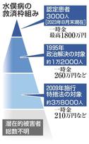 ただ「感覚障害など複数の症状の組み合わせ」という基準の下で未認定が相次いだ。このため95年に「政治決着」を図り、未認定でも一定の症状があれば一時金を支給した。そうした中で2004年に最高裁判決は、感覚障害だけでも水俣病と認める判断を示した。
