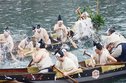 参加して一人前の大人と認められる漁師町・賀露の通過儀礼の一環。かつては20歳だけで担ったが、若者が減った現在は年齢の幅を広げている。ふんどし姿の7人はおはらいを受け、近くの賀露港の海に飛び込んで身を清め、交代しながら火おこしに取り組んだ。なかなか発火せず2度中断して海で身を清め直した。開始から1時間ほどして火が付くと、歓声が上がった。