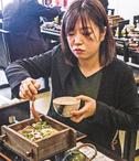 「古御膳」は3月、サンラポーむらくもの料理長に就任した和食が専門の幸野光宏さん(45)が考案。泥臭さがあるスズキを地元の宝箱(松江市大庭町)の緑茶を使用し、臭みを消して天ぷらにした。