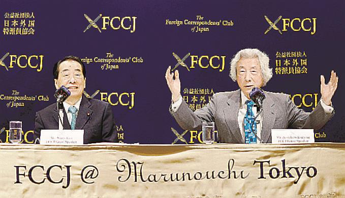 東京電力福島第1原発事故後、脱原発を訴える小泉純一郎、菅直人両元首相が1日、東京都内の日本外国特派員協会で記者会見し「政党の枠を超えて原発ゼロで発展できる国にしたい」(小泉氏)などと、原発ゼロと再生可能エネルギーの導入拡大を呼び掛けた。2011年3月の事故後、両氏がそろって記者会見するのは初めてという。