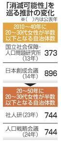 消滅可能性で山陰両県自治体 厳しい現実に「危機感」 続く東京集中に反発も 山陰 2024/4/25 04:00 保存 人口戦略会議が公表した「消滅可能性」リストに入った山陰両県の自治体は人口減少対策の効果が出ていない厳しい現実を受け止めた。脱却した自治体も人口減少が進む状況は変わってい... 残り774文字(全文:859文字) 続きを読むには会員登録が必要です 無料会員に登録する ログインする 保存 記事を保存する この機能は有料会員限定です。保存した記事やフォローした特集をマイページでご覧いただけます。 有料会員になる ログイン 関連記事 自治体4割「消滅可能性」 島根4市町、鳥取8町 30年間で若い女性半減 人口戦略会議 2024/4/25 04:00 島根 消滅脱却全国1位 2024/4/25 04:00 移住成果も流出止まらず 識者「女性就労環境が鍵」 消滅の可能性自治体 表層深層 2024/4/25 04:00 考え方「前回と同じ」 データ処理変更 2024/4/25 04:00 消滅可能性自治体公表 丸山知事「日本全体の問題を市町村の問題にすり替えている」「東京の出生率は最低だ」人口偏在放置を批判 2024/4/24 19:23 特集・連載 献血推進大使に大学生4人任命 島根県血液センター 2025/9/1 04:00 客の前では「王子様」 「オタク趣味」は小学生の頃から コンカフェ店員の女子大生(上)〈顔なき…声〉 2025/8/12 05:00 スポーツを科学しよう<49> 栄養(17) 安易なサプリメント使用は禁物 2025/6/3 04:00 住民、竹島問題啓発を要望 5年ぶり、領土議連と意見交換 2025/2/22 04:00 歴史と人をつなぐ語り部 荒神谷ボランティアガイドの会 会員 長廻 三枝子さん お子さんがより学べる家庭環境とは? 小中学生の保護者必聴セミナーを11月15日(土)に開催 「元気かな?」で地域をつなぐ 浜田市弥栄町 大谷十三一さん 島根スサノオマジック「選手のサイン入りTシャツ」 先着10名様にプレゼント