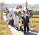 【出雲】出雲市上塩冶町の塩冶神社(花田英己宮司)でこのほど、春祭りの奉祝祭があり、子どもみこし行列が繰り出した。児童らが「わっしょい、わっしょい」と元気いっぱいのかけ声を響かせながら、町内を練り歩いた。